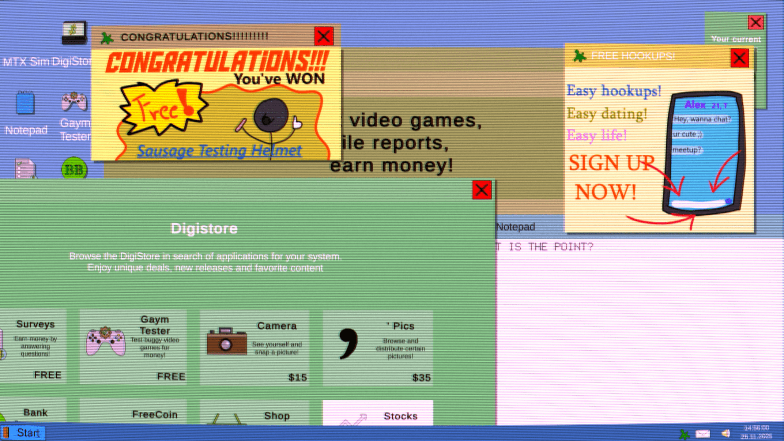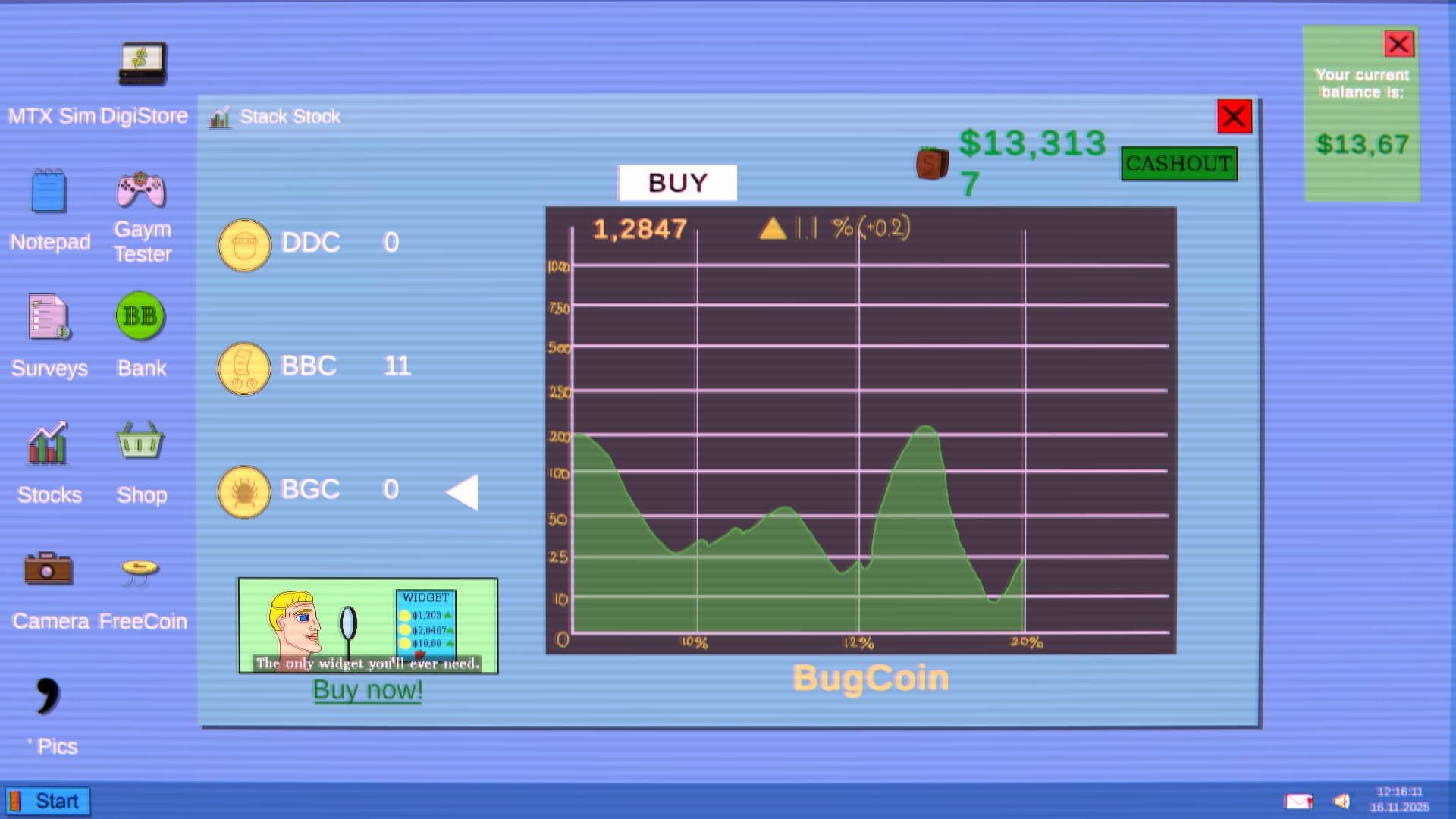 The main game MTX Sim is a simple clicker game with limited features. Earn money in lots of different ways to be able to afford those precious skins and features blocked behind a paywall. Or maybe just focus on earning as much money as possible? There are many ways to play and many endings to uncover.
